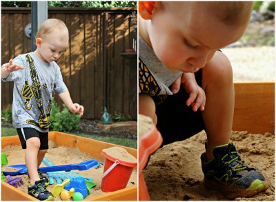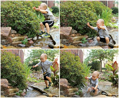 Yesterday, both boys spent the day with Nana and Papa while I made up some maternity leave for the military. I missed them terribly and wanted to make up for lost time on our lazy Saturday. Asher wanted to play outside, so I upped the ante and surprised him by turning on the stream as he stood in the dry bed. He jumped and splashed until he was soaked.
